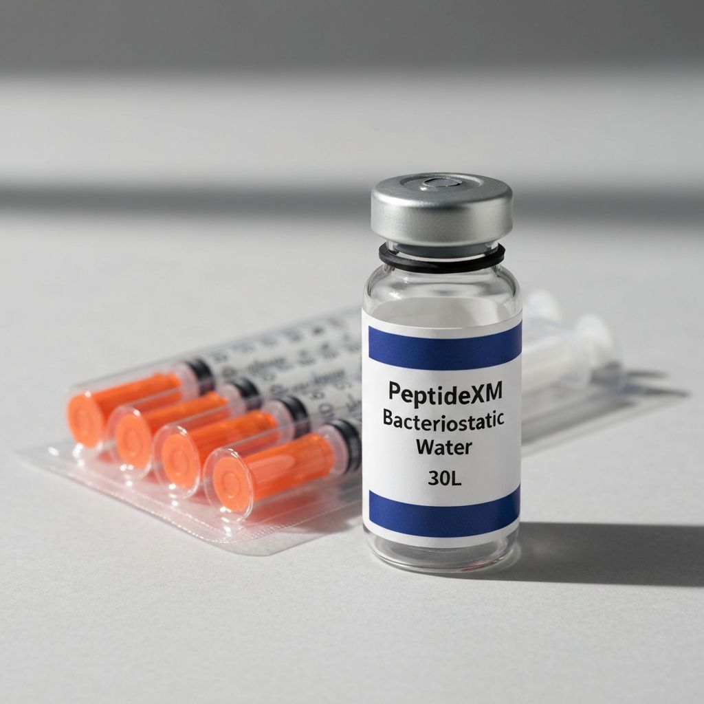 Syringe plus 30ml bacteriostatic water — everything needed to get started.